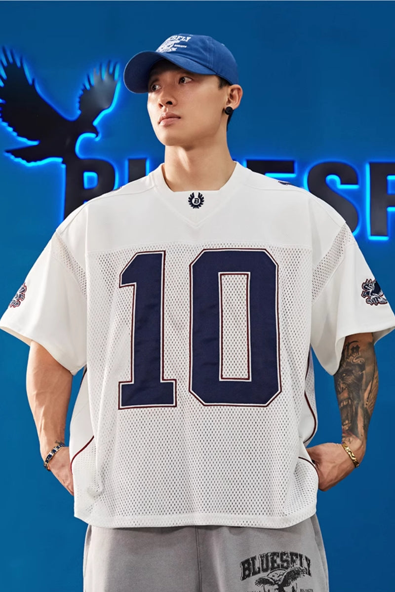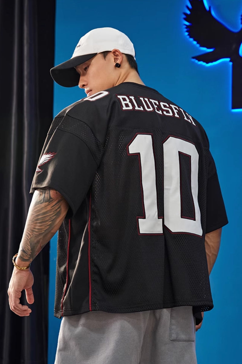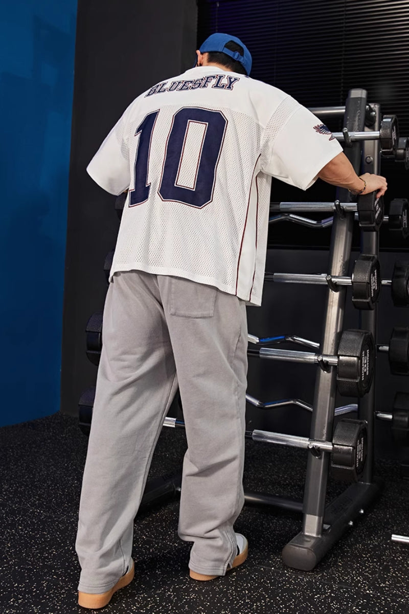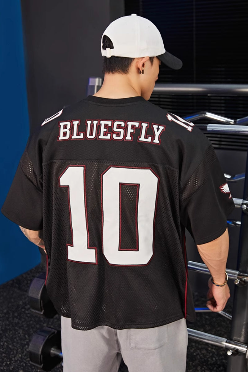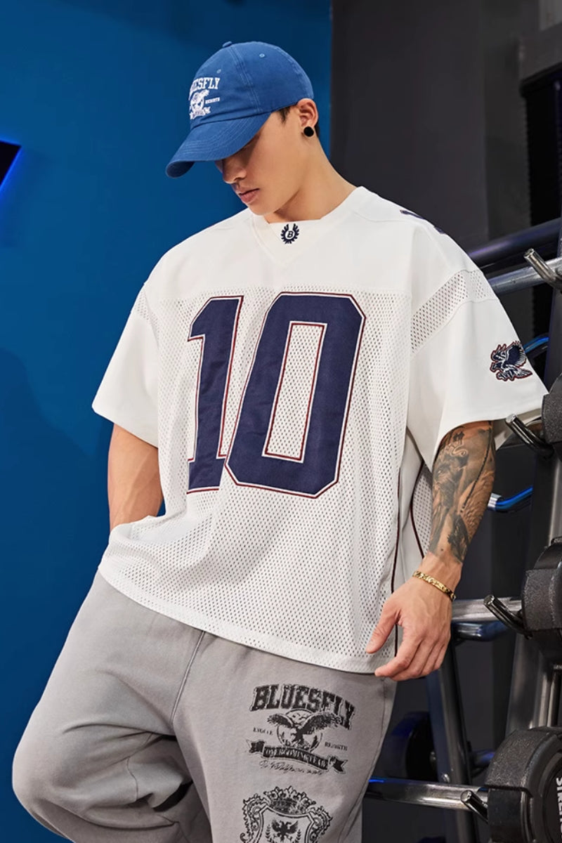280gのポリエステルメッシュ素材を使用した、通気性に優れたトレーニングTシャツ。フロントとバックに大胆なナンバリングプリントを配置し、アメリカンスポーツの雰囲気を演出。ゆったりとしたワイドシルエットで体格を選ばず着用でき、ストリートスタイルからジムトレーニングまで幅広く活躍。吸湿速乾性が高く、アクティブシーンでも快適な着心地をキープします。