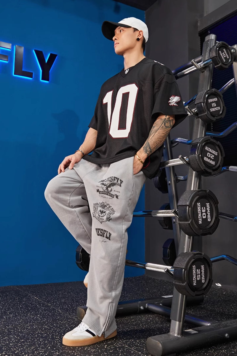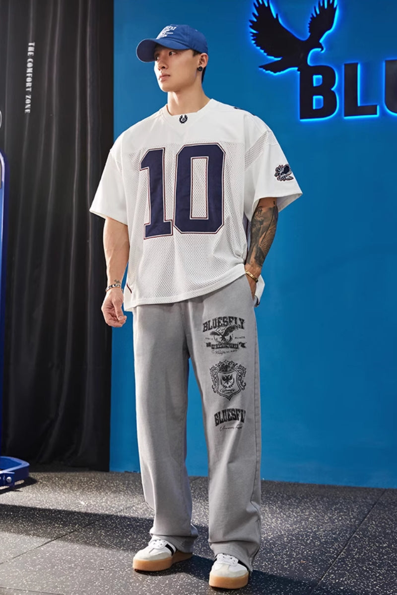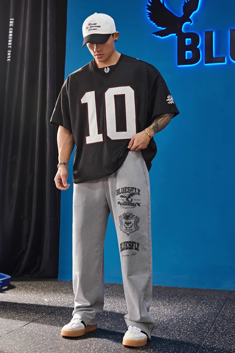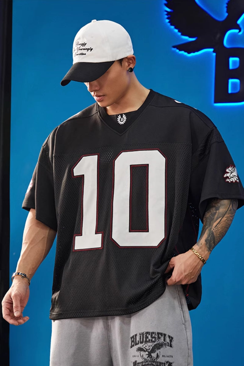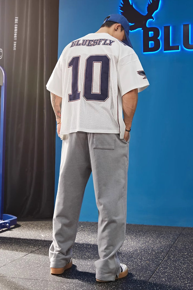 280gのポリエステルメッシュ素材を使用した、通気性に優れたトレーニングTシャツ。フロントとバックに大胆なナンバリングプリントを配置し、アメリカンスポーツの雰囲気を演出。ゆったりとしたワイドシルエットで体格を選ばず着用でき、ストリートスタイルからジムトレーニングまで幅広く活躍。吸湿速乾性が高く、アクティブシーンでも快適な着心地をキープします。