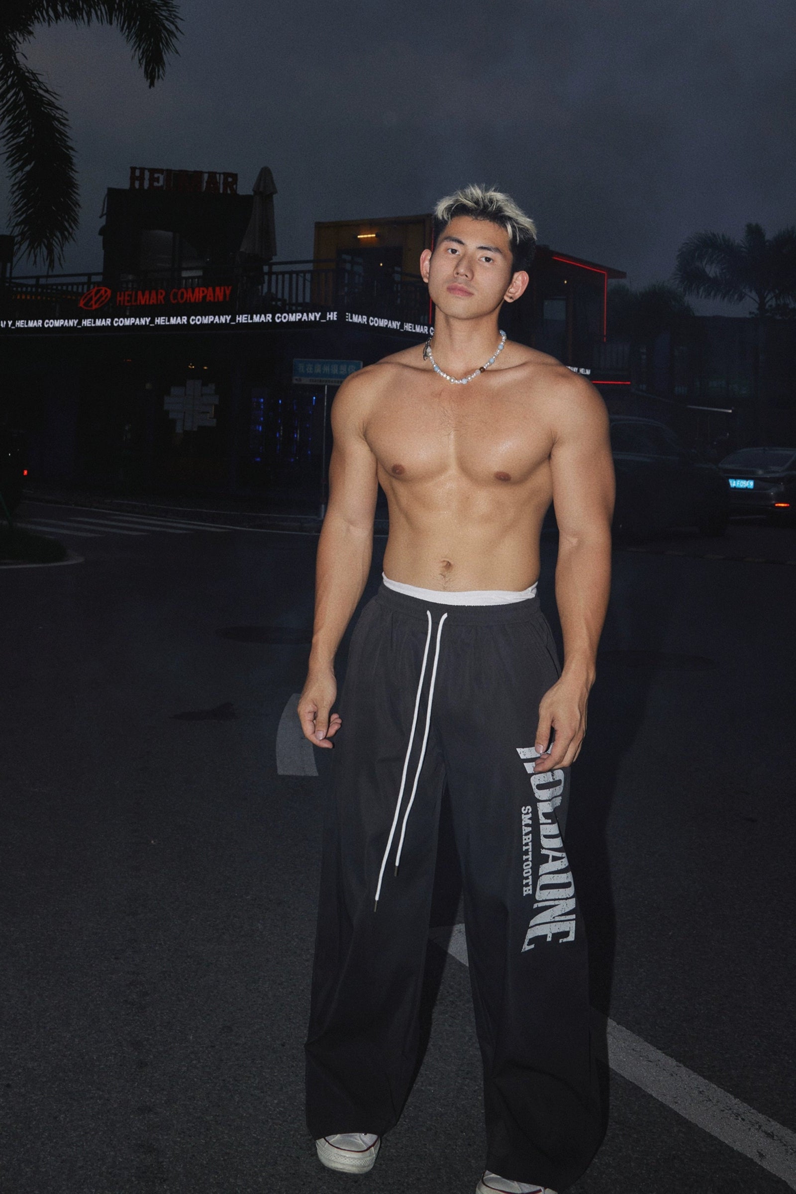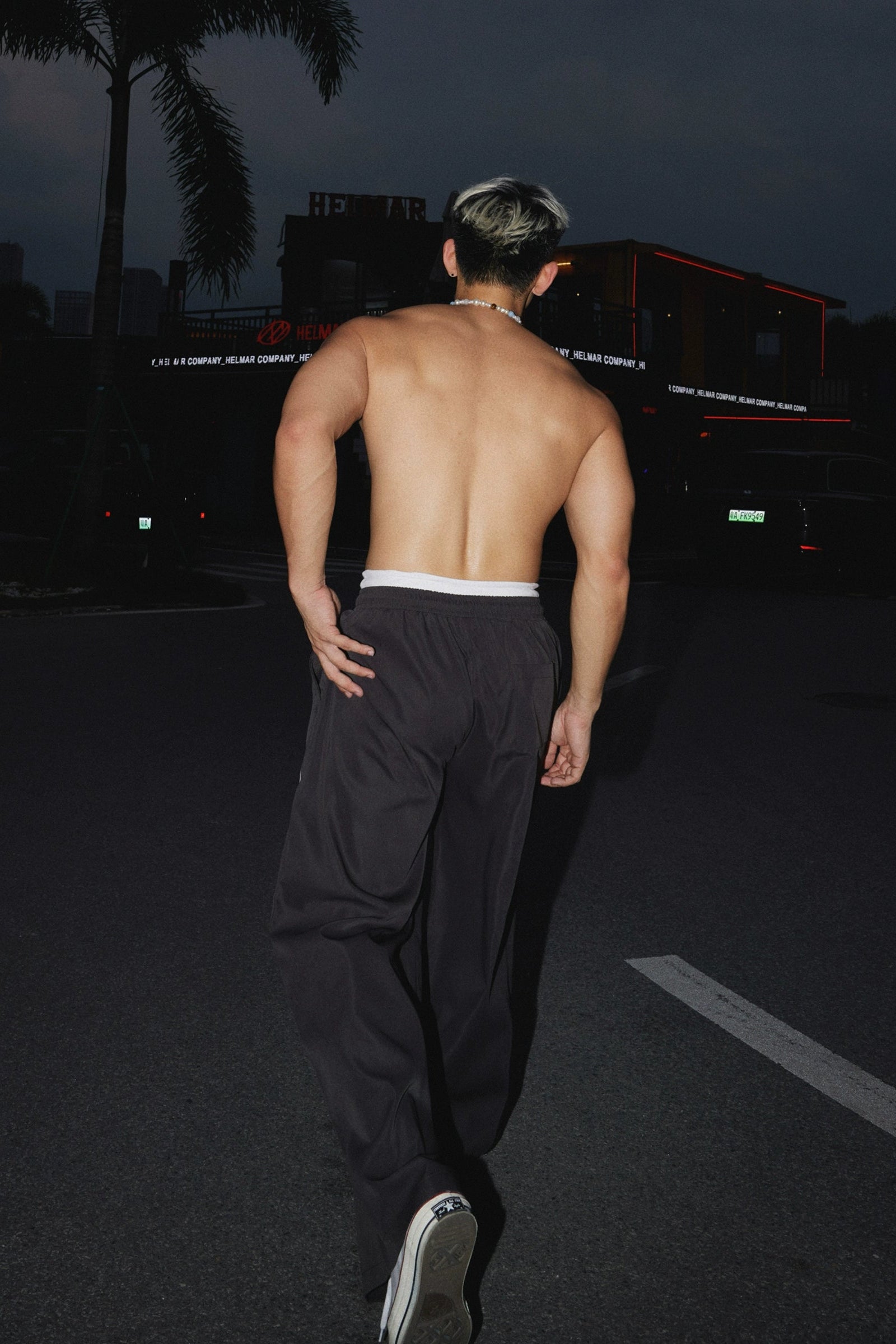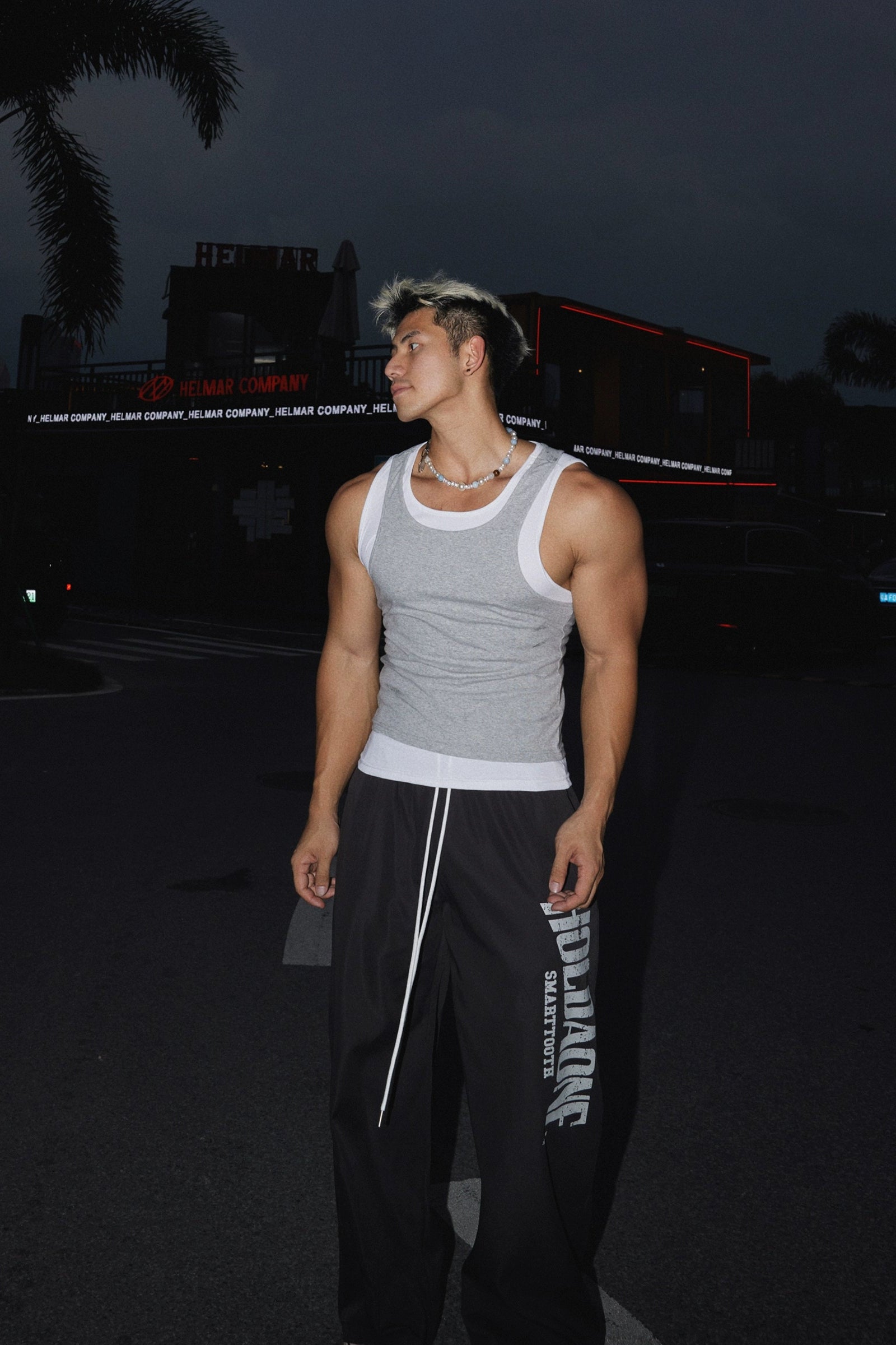 レイヤード風のダブルウエストデザインが目を惹くストレートワイドパンツ。腰元から覗くホワイトのフェイクレイヤーが、シンプルながらもスタイリングに奥行きを与えます。ゆったりとしたストレートシルエットでトレーニー体型にもフィットし、リラックスした穿き心地を実現します。通気性のあるポリエステル素材で、運動中も快適に着用可能な一本です。