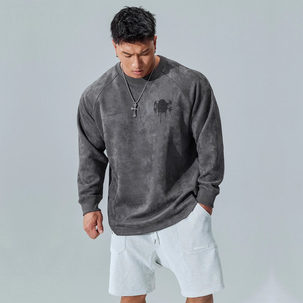 柔らかな混紡生地を使用したラグランスリーブスウェット。しっとりとした質感で快適な着心地を実現し、トレーニングからタウンユースまで幅広く対応。ゆとりあるシルエットでトレーニー体型にも自然にフィットし、重ね着でも単体でもスタイリング可能。ストリート感とスポーツ感を兼ね備えた一枚です。