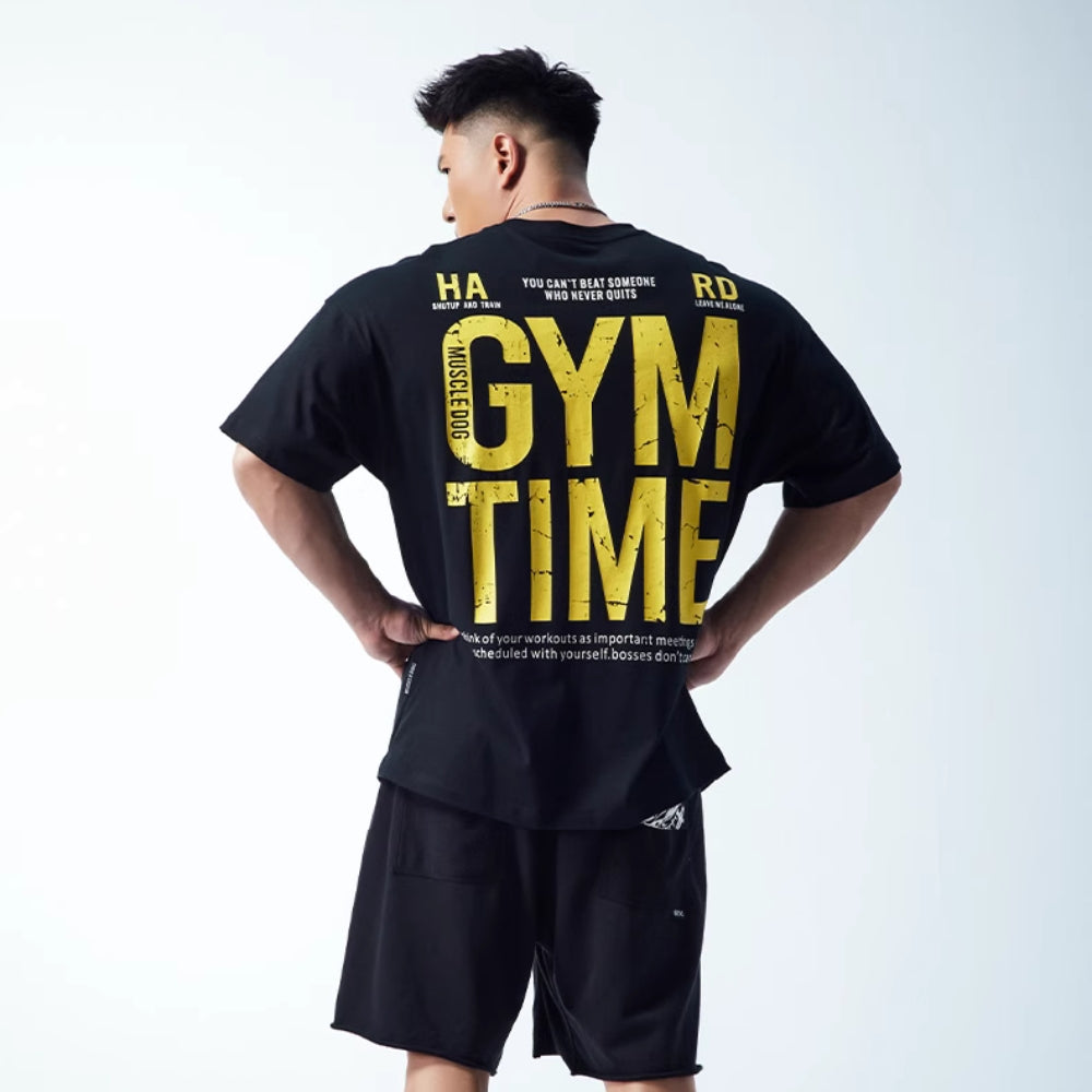 厚手のコットン生地を使用した半袖Tシャツ。しっかりとしたハリ感とソフトな肌触りを両立し、デイリーからトレーニングシーンまで快適に着用可能。背面には大胆なクラック加工風のロゴプリントを施し、ストリート感とヴィンテージライクな雰囲気を演出。オーバーサイズシルエットで体格を選ばずリラックスして着こなせ、タウンユースにもジムウェアにも最適な一枚です。