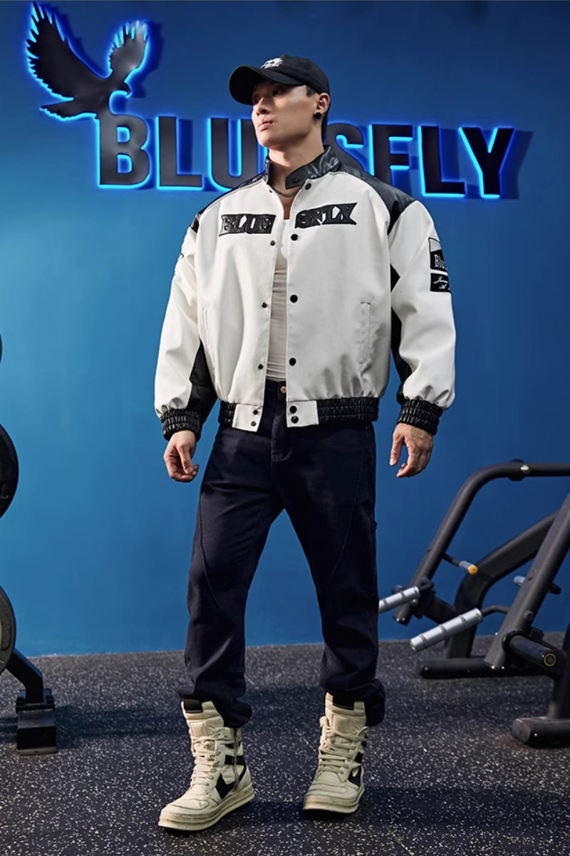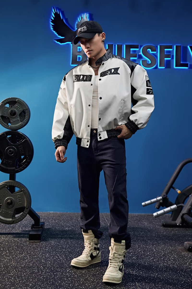 ヴィンテージ感のあるデザインとモノトーンの配色が際立つフェイクレザージャケット。シンプルながら存在感のあるストリートスタイルを演出します。程よいハリ感を持つPUレザー素材を使用し、軽量で扱いやすく、トレーニング後のカジュアルスタイルにも取り入れやすい仕上がり。胸元と袖に施されたワッペンディテールがアクセントとなり、スタジアムジャケットのクラシックさを現代風にアップデート。