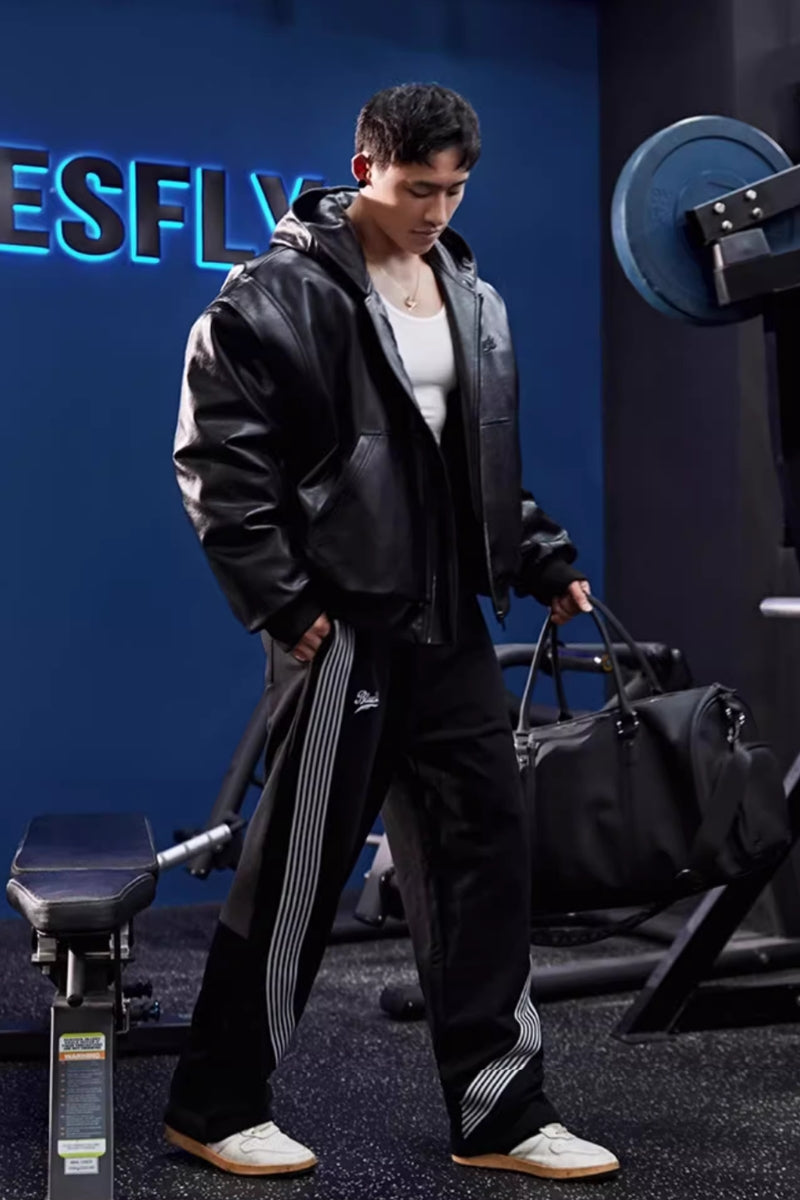 上質な光沢感を持つフェイクレザーを使用したフード付きジャケット。三層構造の中綿仕様により高い保温性を確保し、冬のストリートスタイルからカジュアルな日常使いまで幅広く対応します。ゆとりのあるワイドシルエットでトレーニーの体格にもフィットしやすく、存在感のあるスタイルを演出します。タフな素材感と都会的な雰囲気を兼ね備えた、冬の主役アウターです。