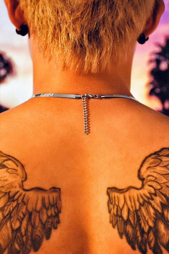 316Lステンレスを採用したスネークチェーンネックレス。滑らかに流れるような平打ちデザインが、胸元を際立たせながら無骨さと色気を演出。18K高精度電鍍によるゴールドと、クールな輝きを放つシルバーの2色展開。単品使いはもちろん、重ね付けでも映えるストリートジュエリー。耐久性に優れ、普段使いからトレーニングシーンまで幅広く活躍。