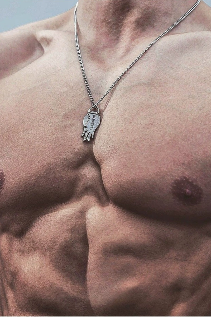 316Lステンレスを採用したツインウィングモチーフネックレス。左右に広がる翼のデザインが胸元にインパクトを与え、自由や守護を象徴。無骨さの中に繊細なディテールが光り、ストリートスタイルからカジュアルコーデまで幅広くマッチ。変色やサビに強い素材で、長期間愛用可能。ペアアクセサリーとしても映える存在感のあるアイテム。